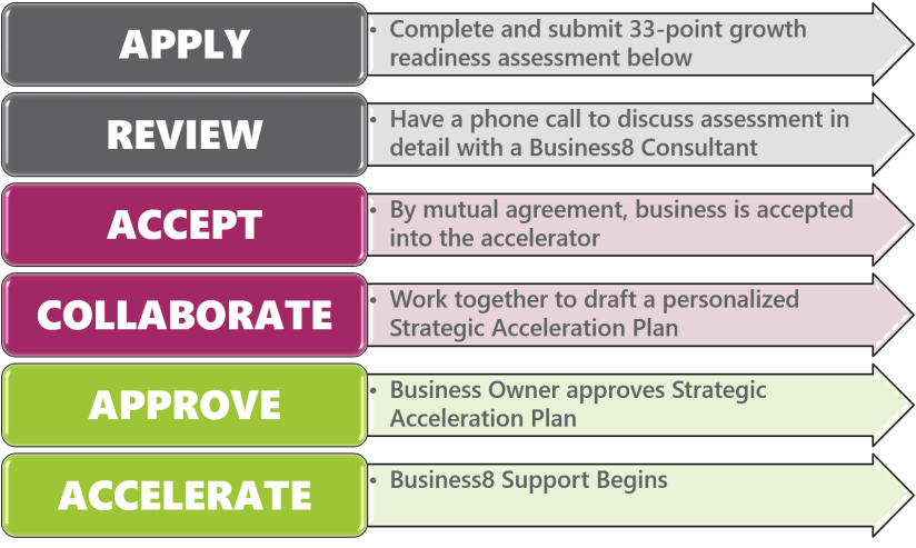 To help us determine your business’s readiness for acceptance into our Business8 Accelerator we have developed a comprehensive Business8 Growth Readiness Assessment.